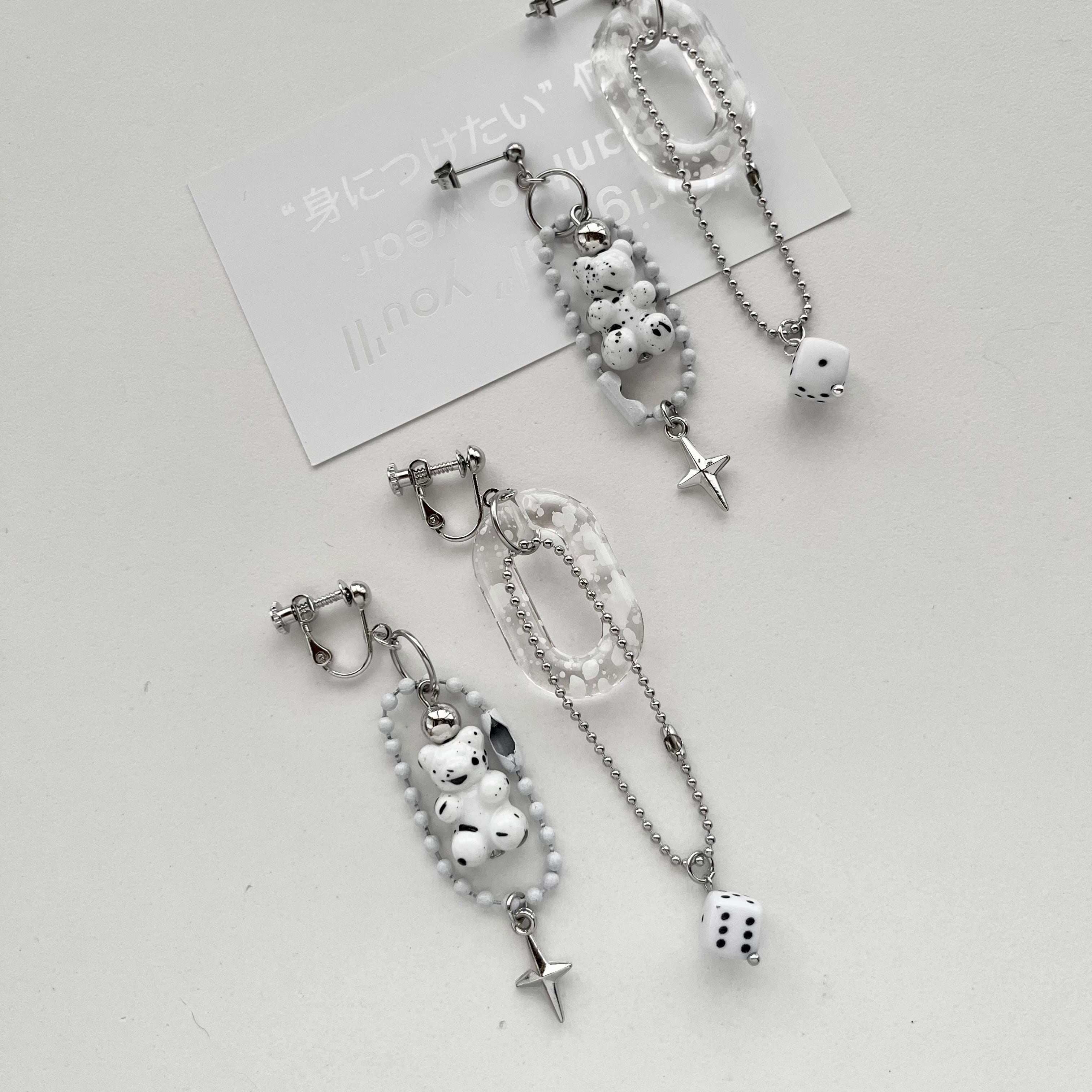 ーWhiteー Ink⚫︎ASM/Bear ピアス/イヤリング