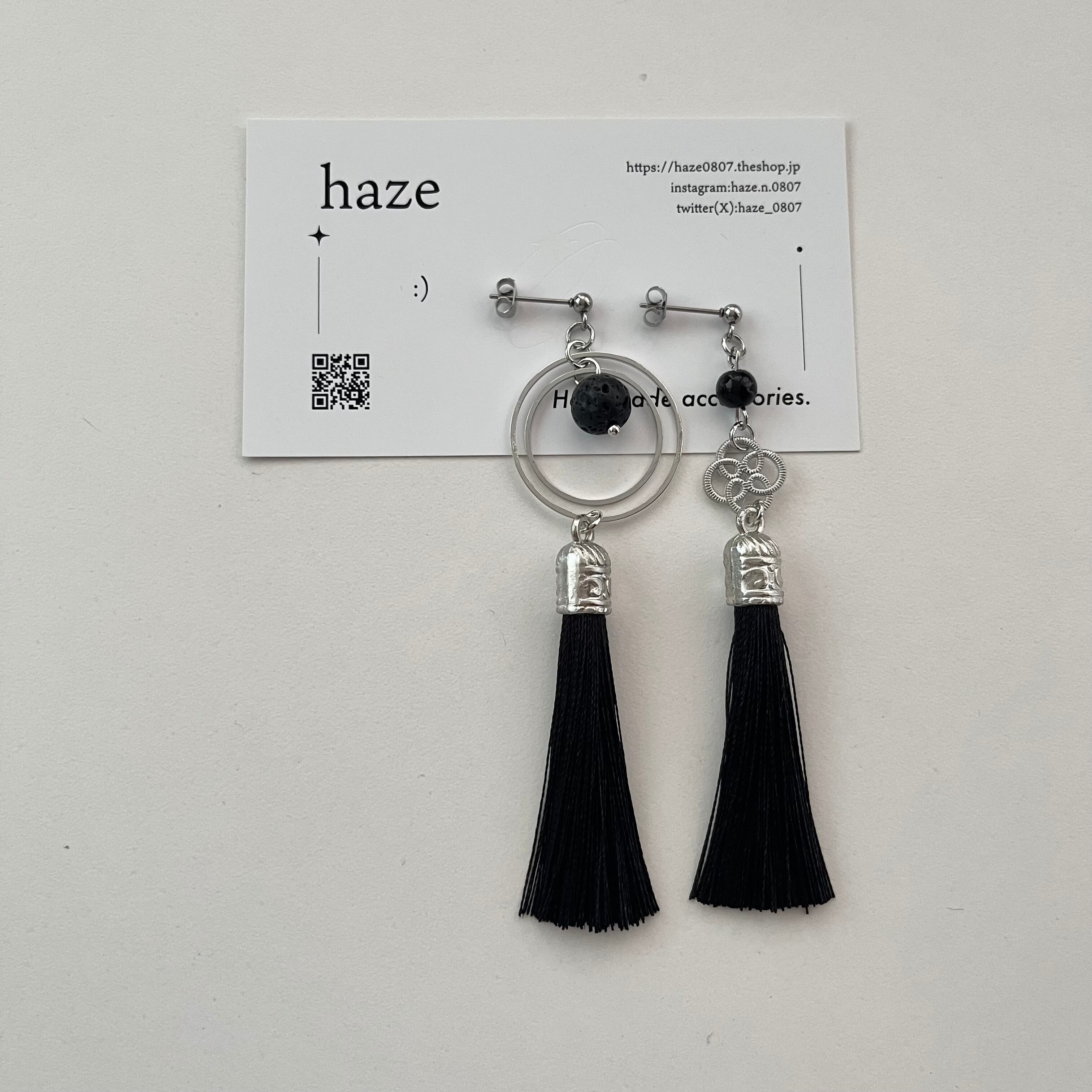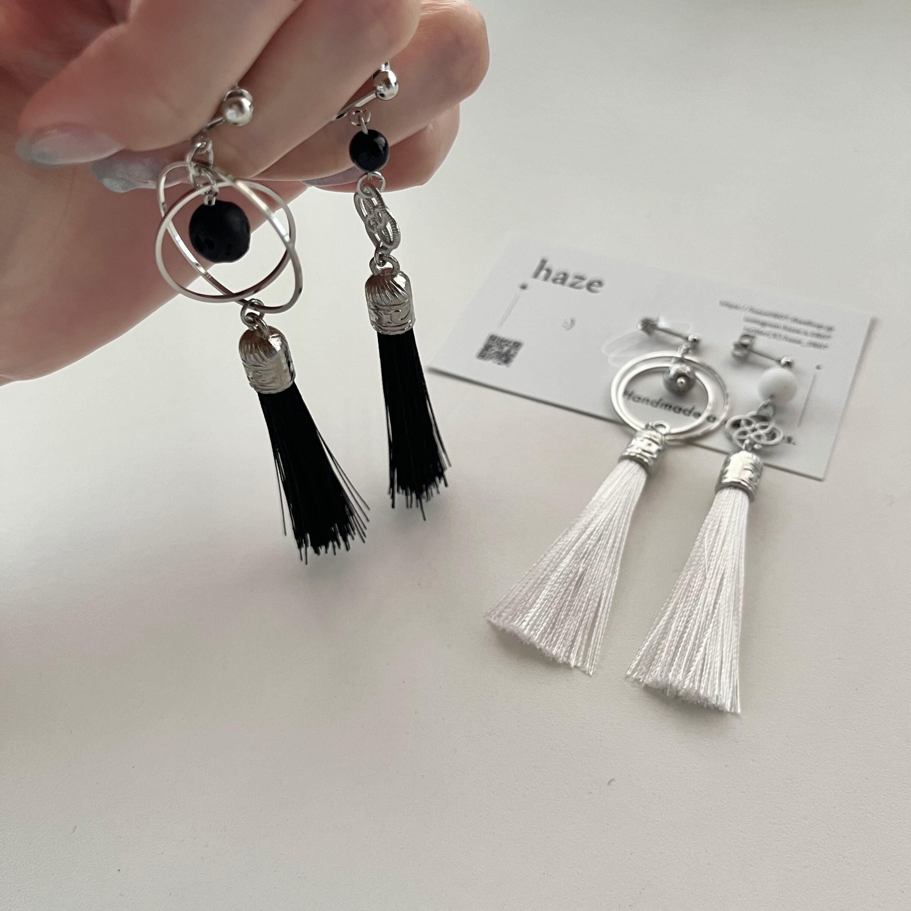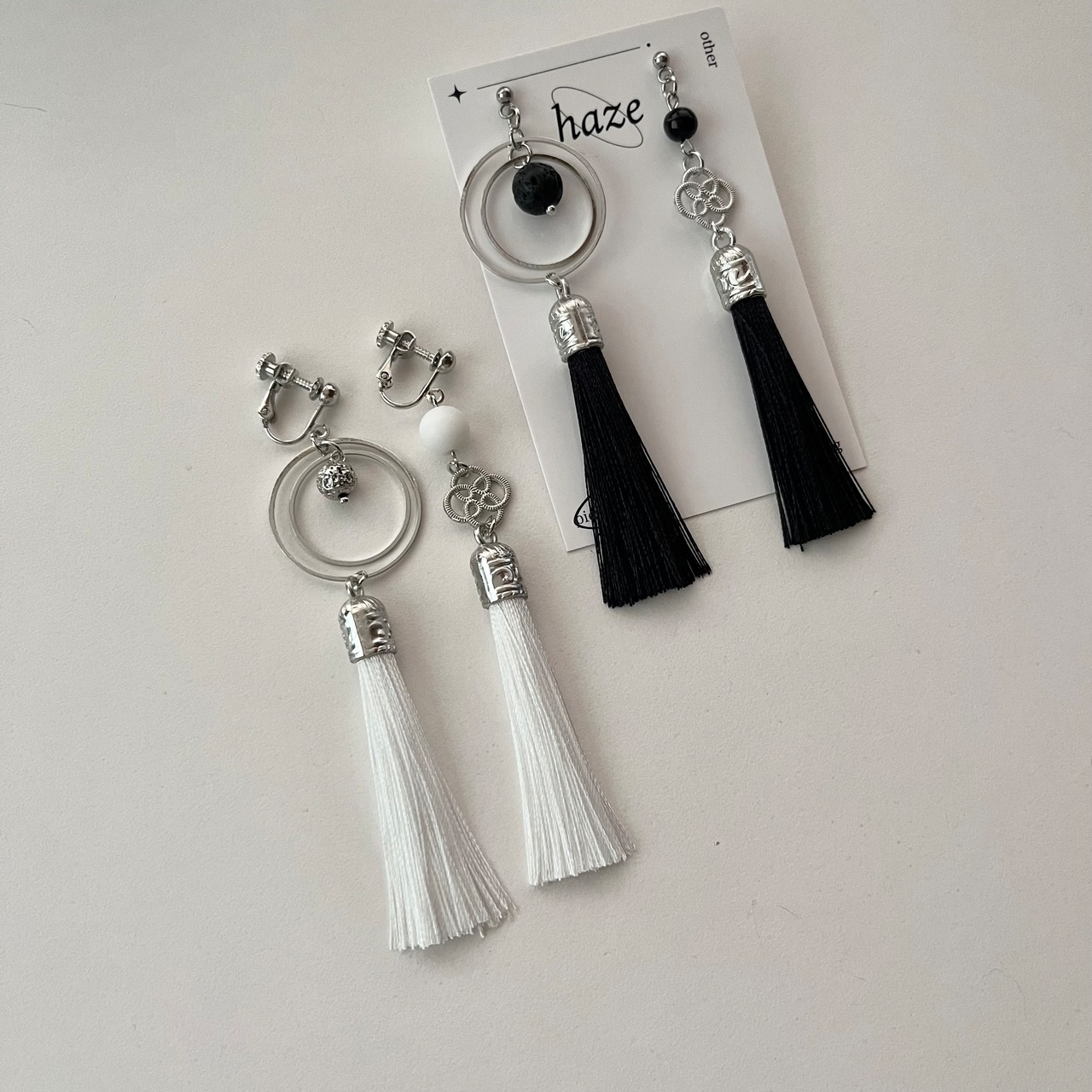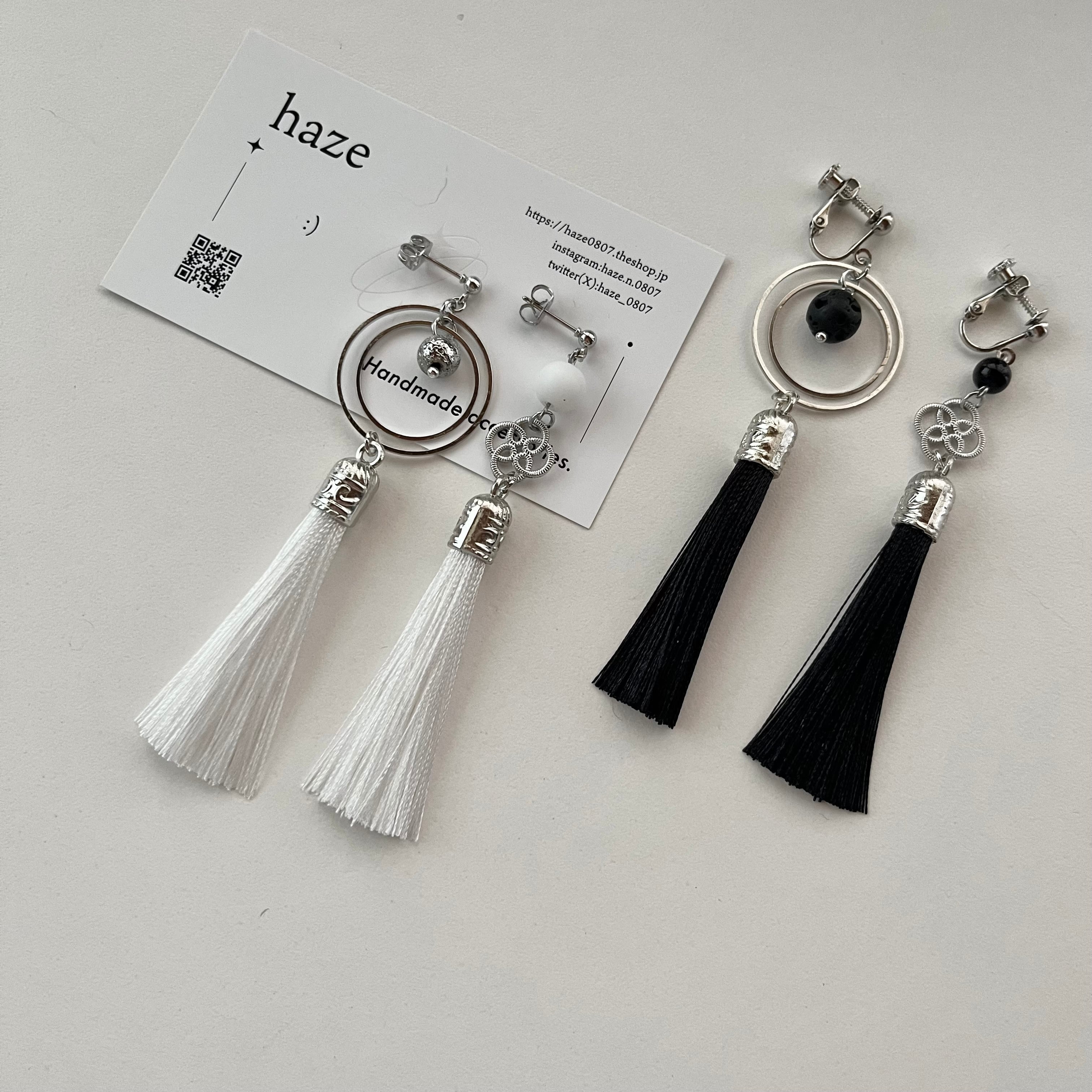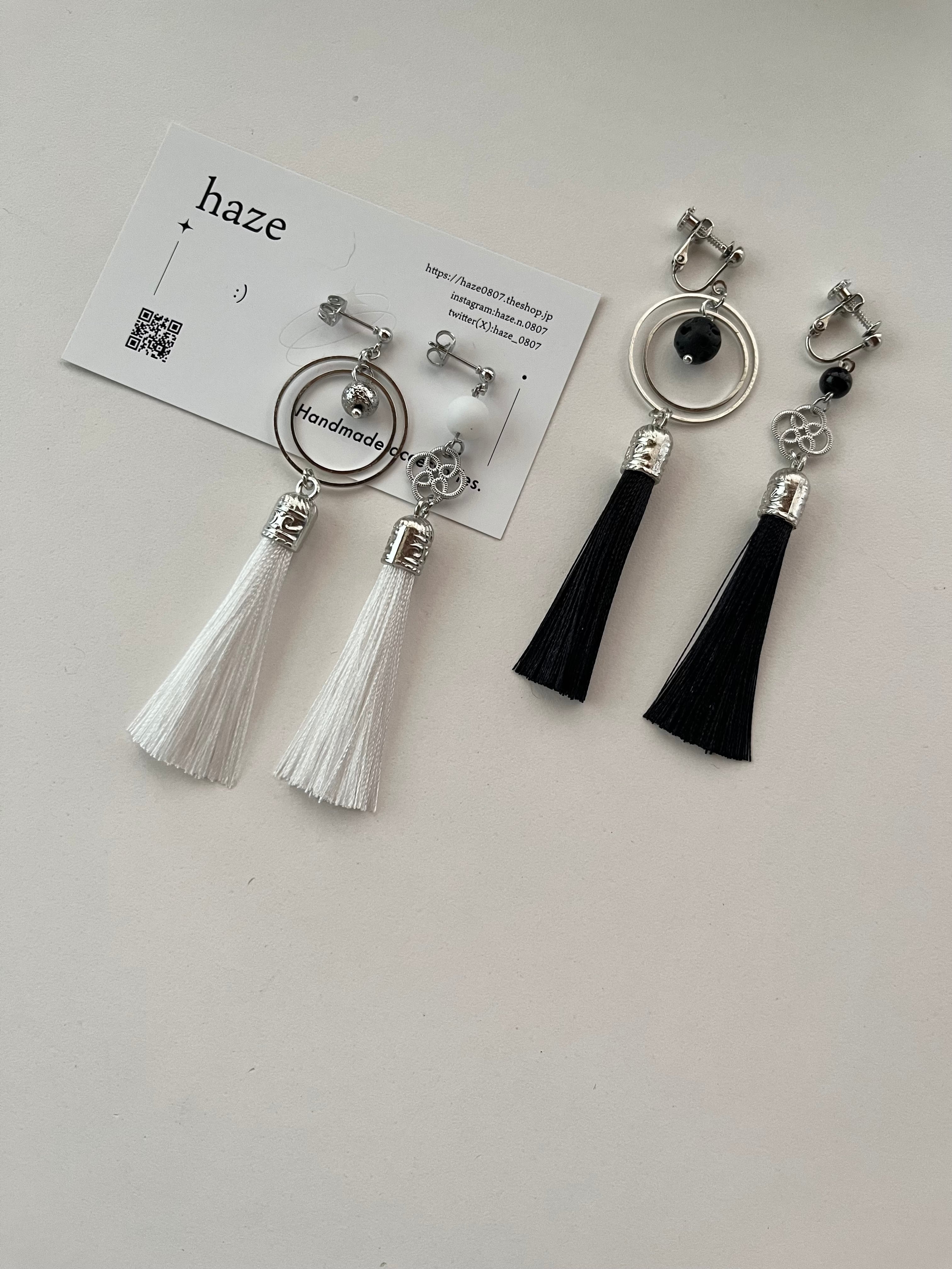 ーBlack or Whiteーtassel, hoop 。asm ピアス/イヤリング