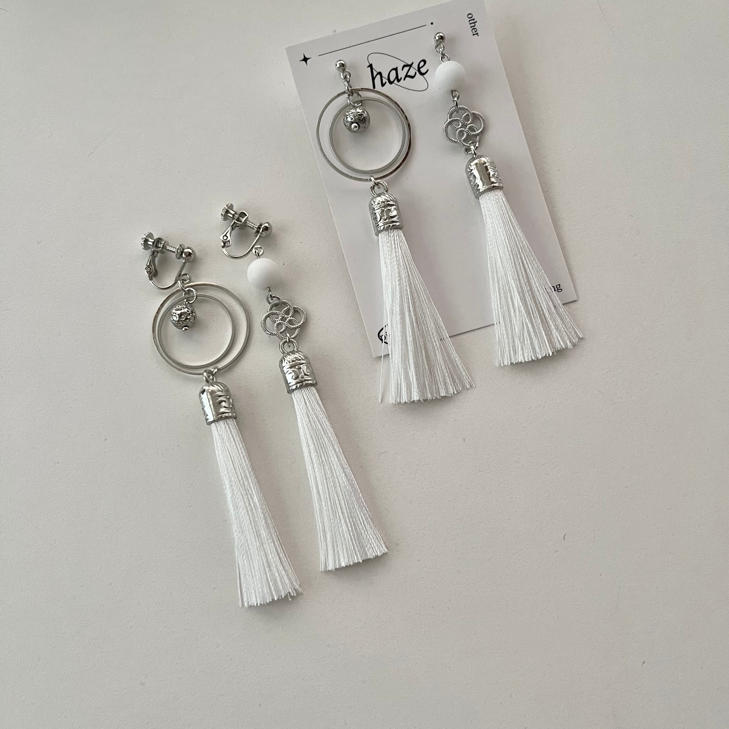 イベントでも人気のモノトーンタッセルピアス/イヤリング。