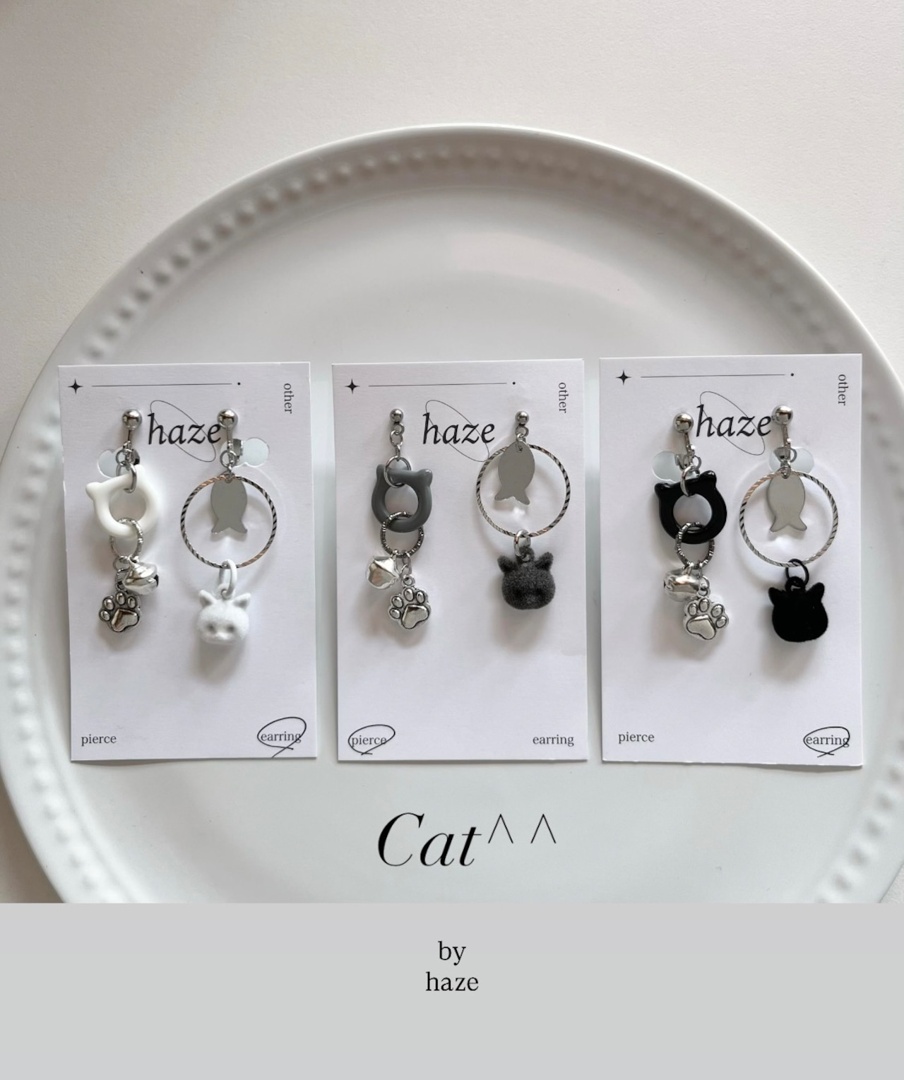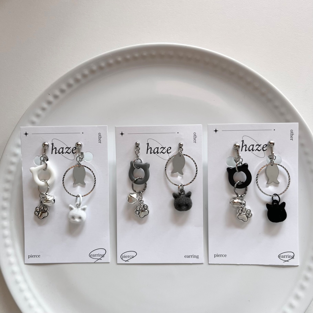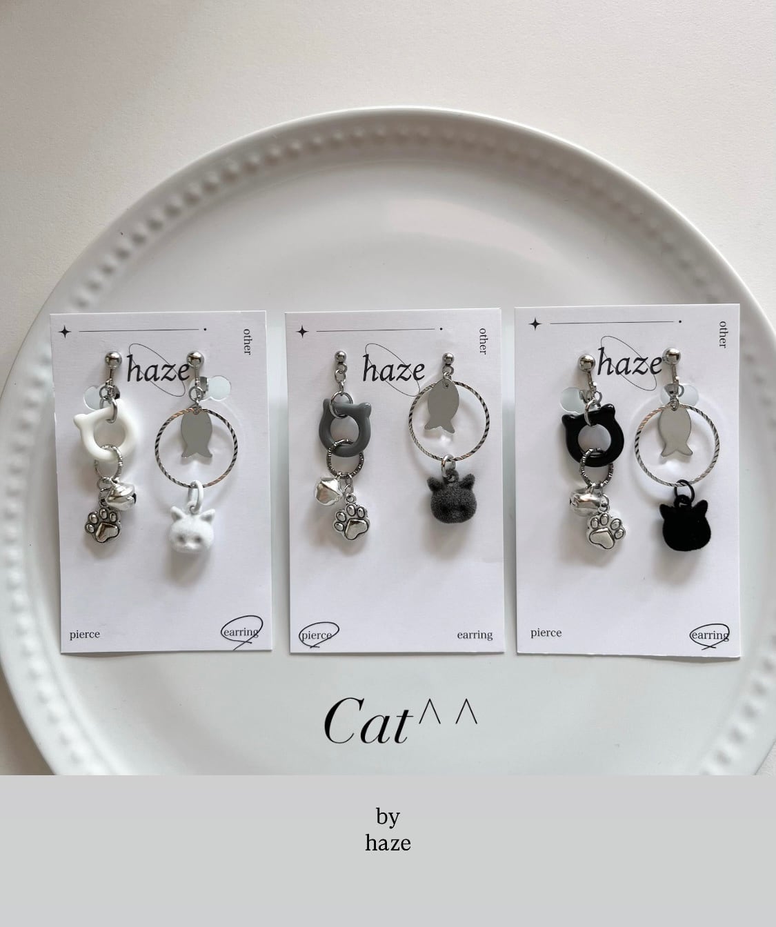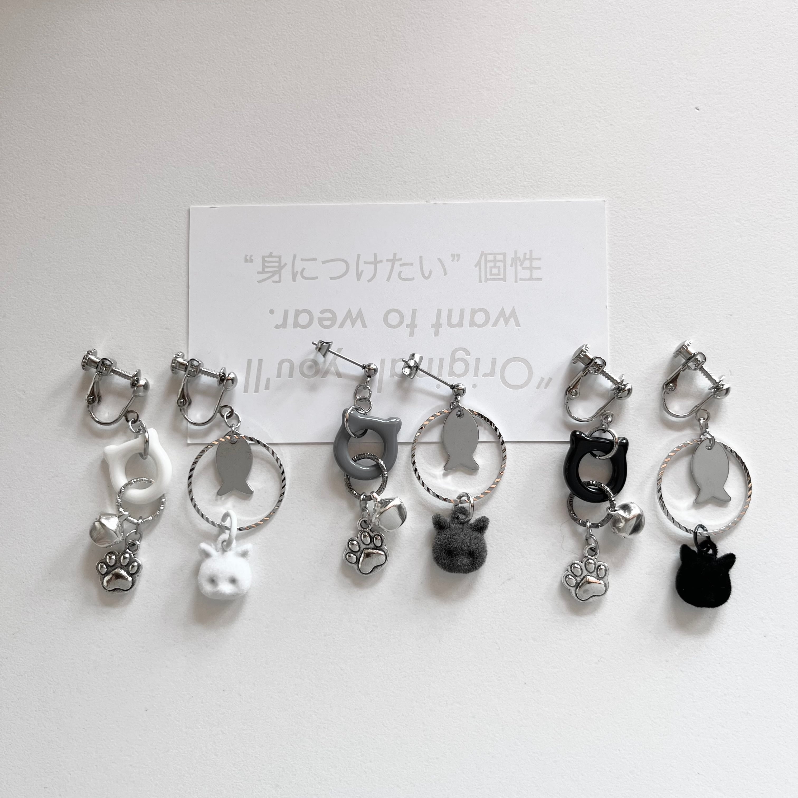 ーBlack or White or GrayーCat motif .鈴ピアス/イヤリング
