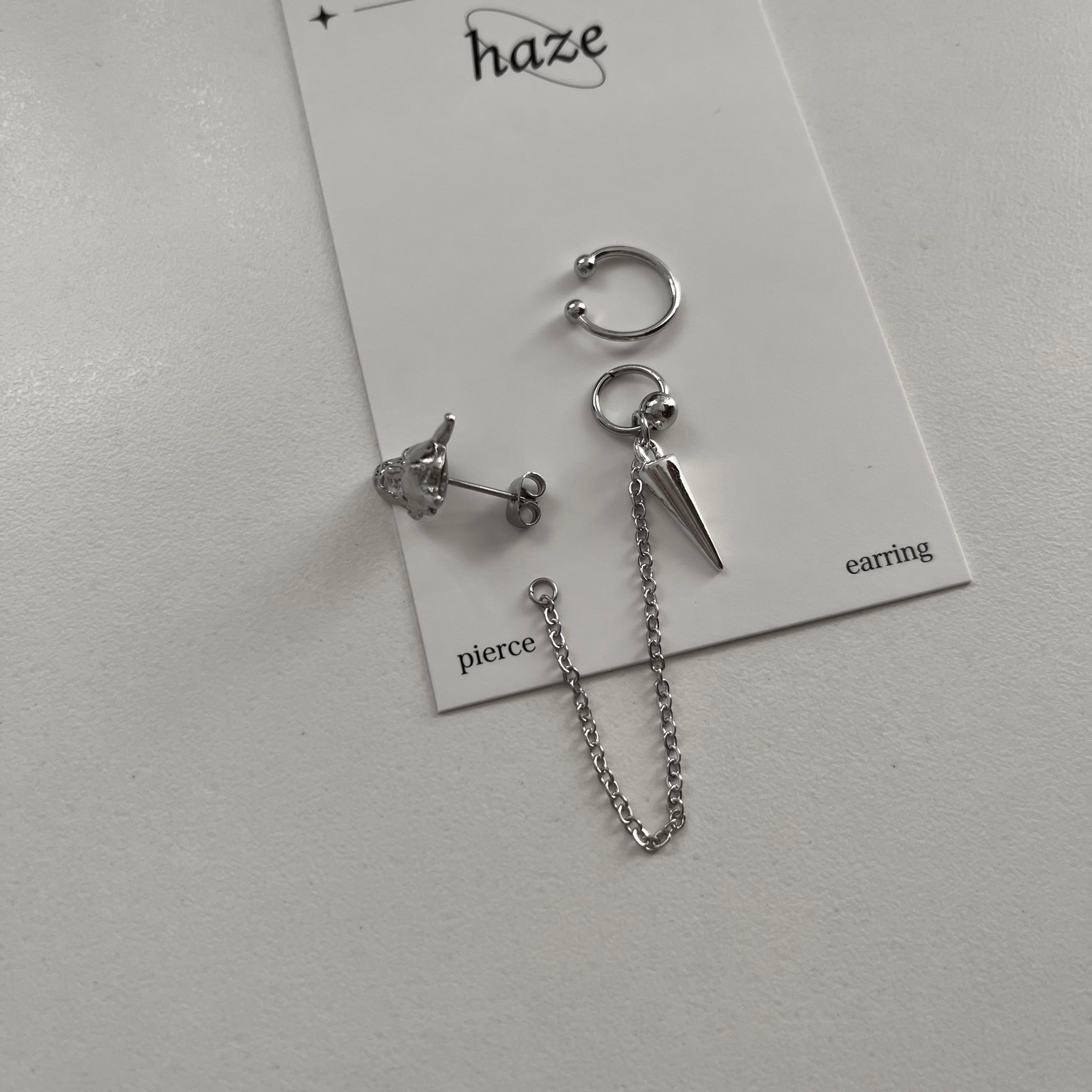 スパイクシルエットがイヤーカフに繋がる片耳用デザイン。