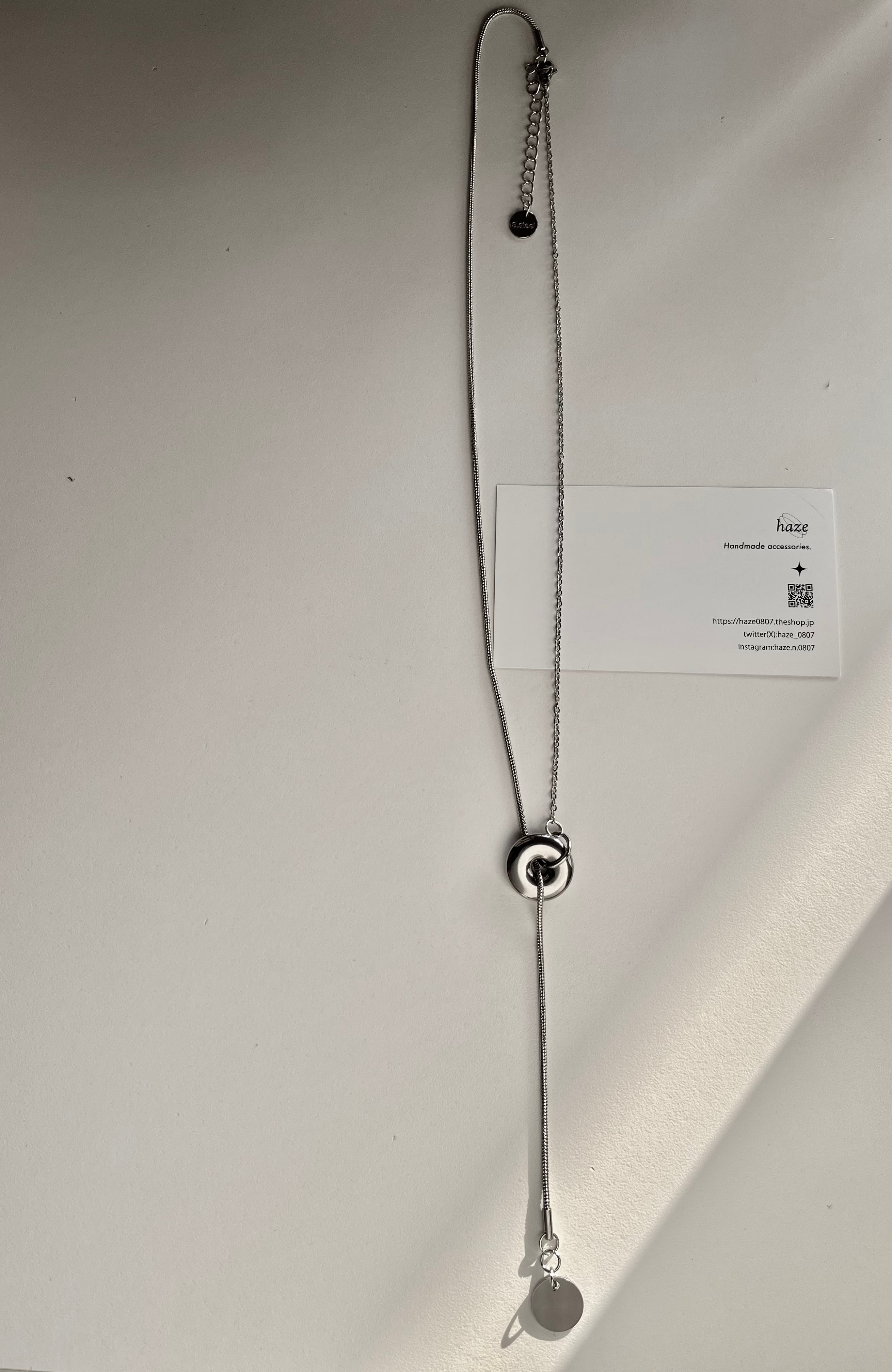 スネークチェーンのロングネックレス。