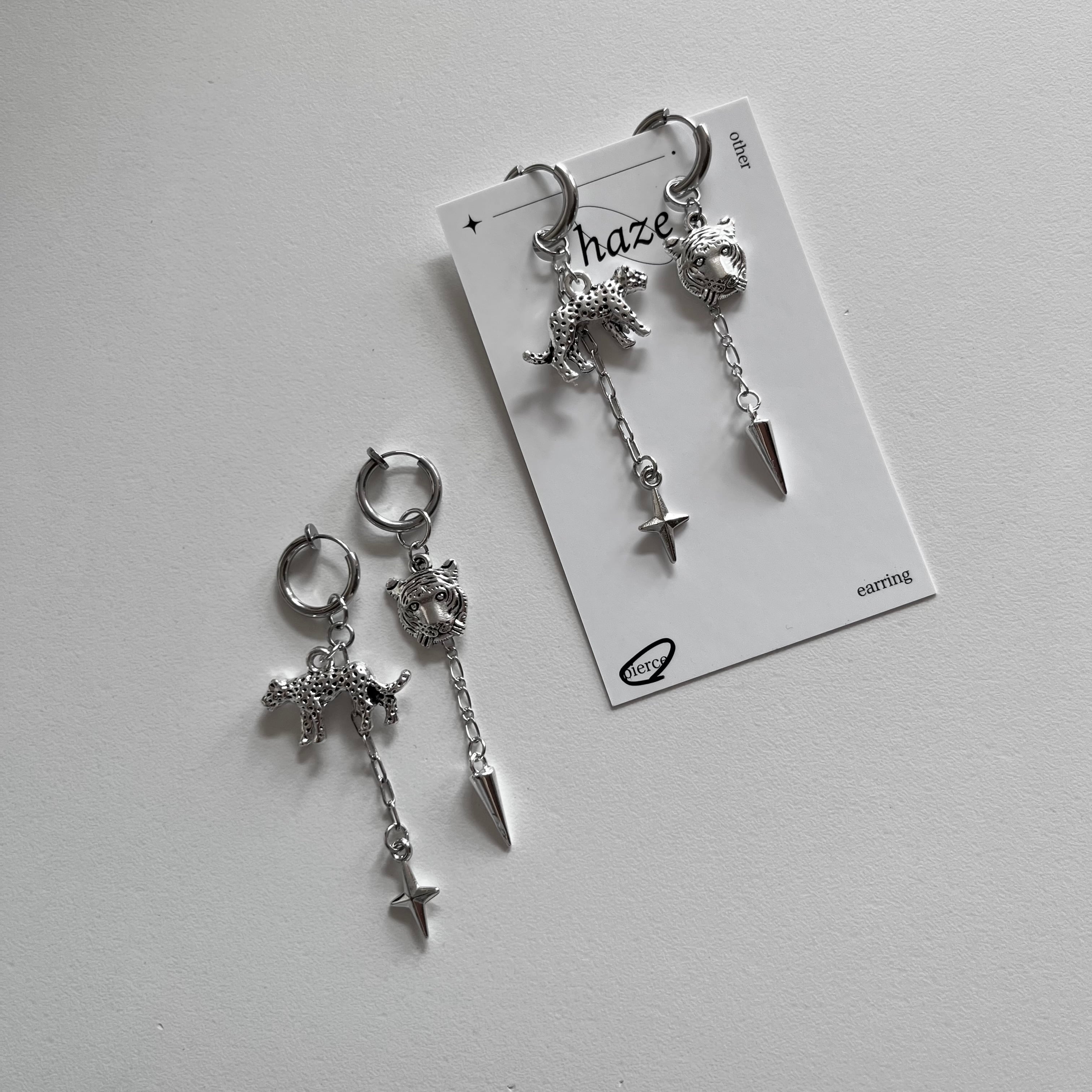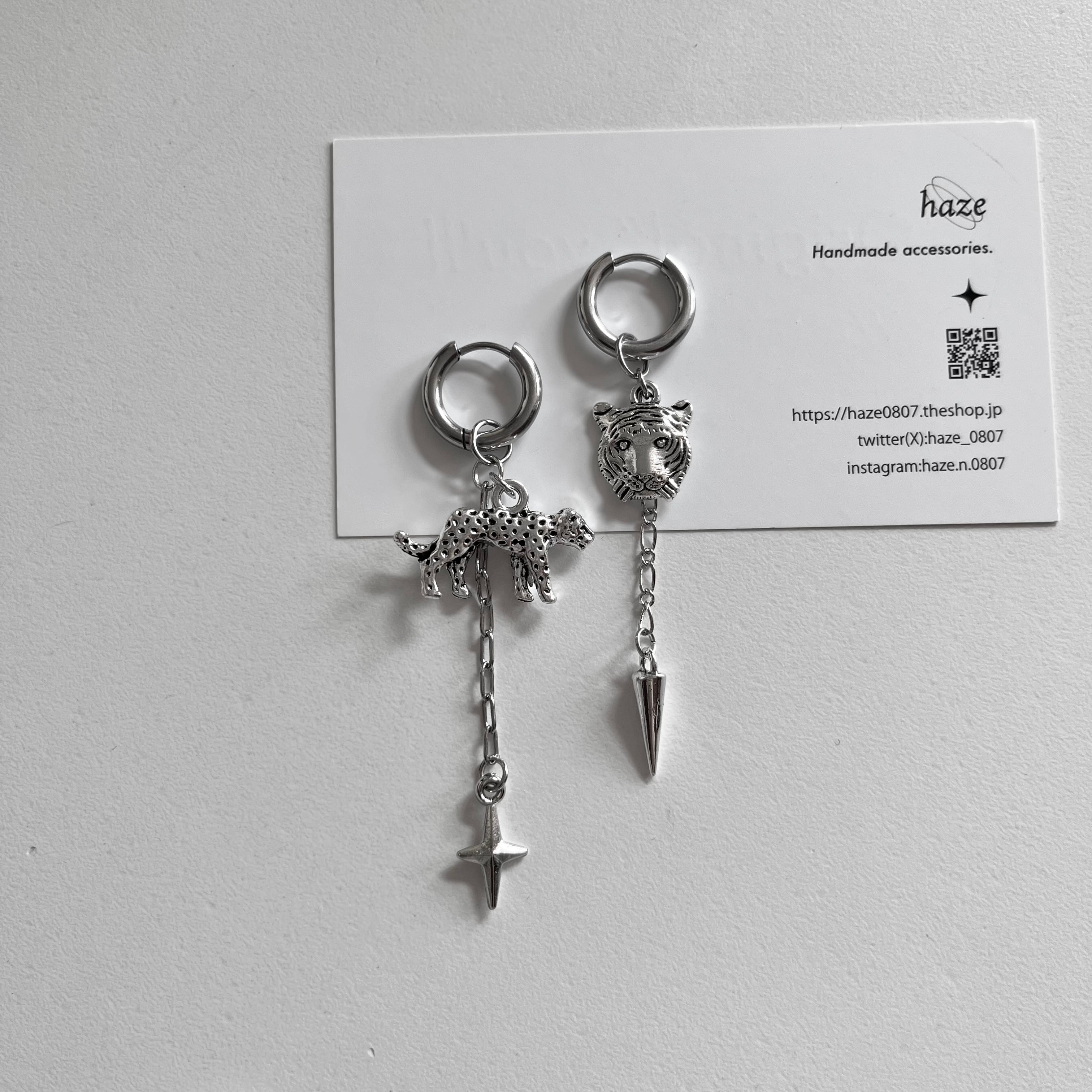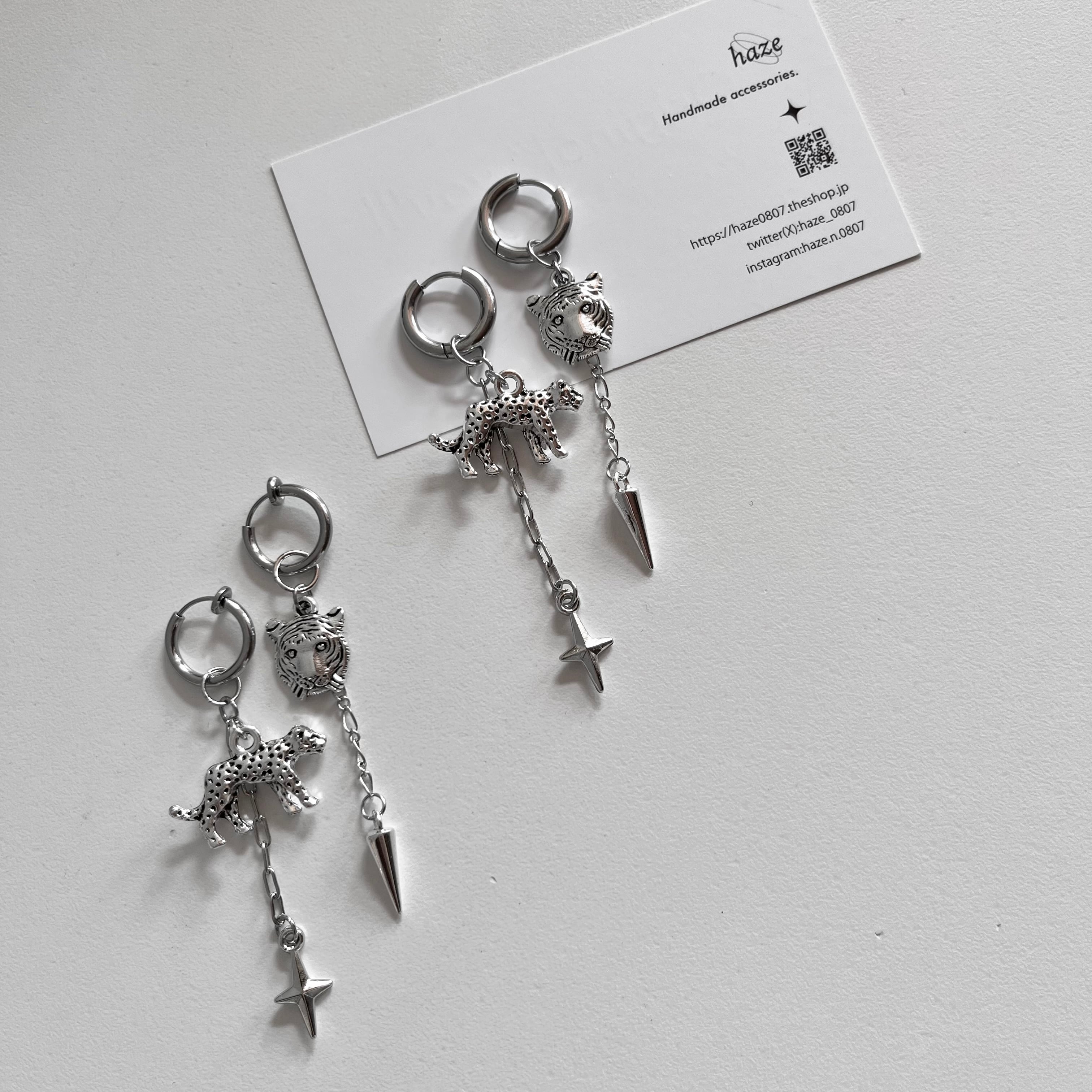 Tiger/leopard .spikeフープピアス/イヤリング