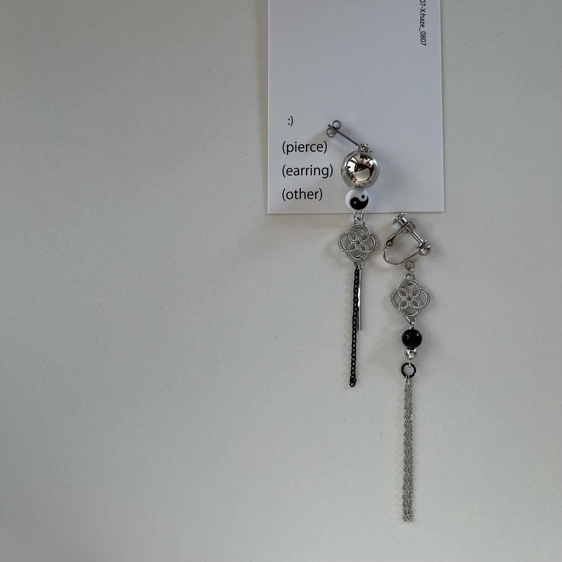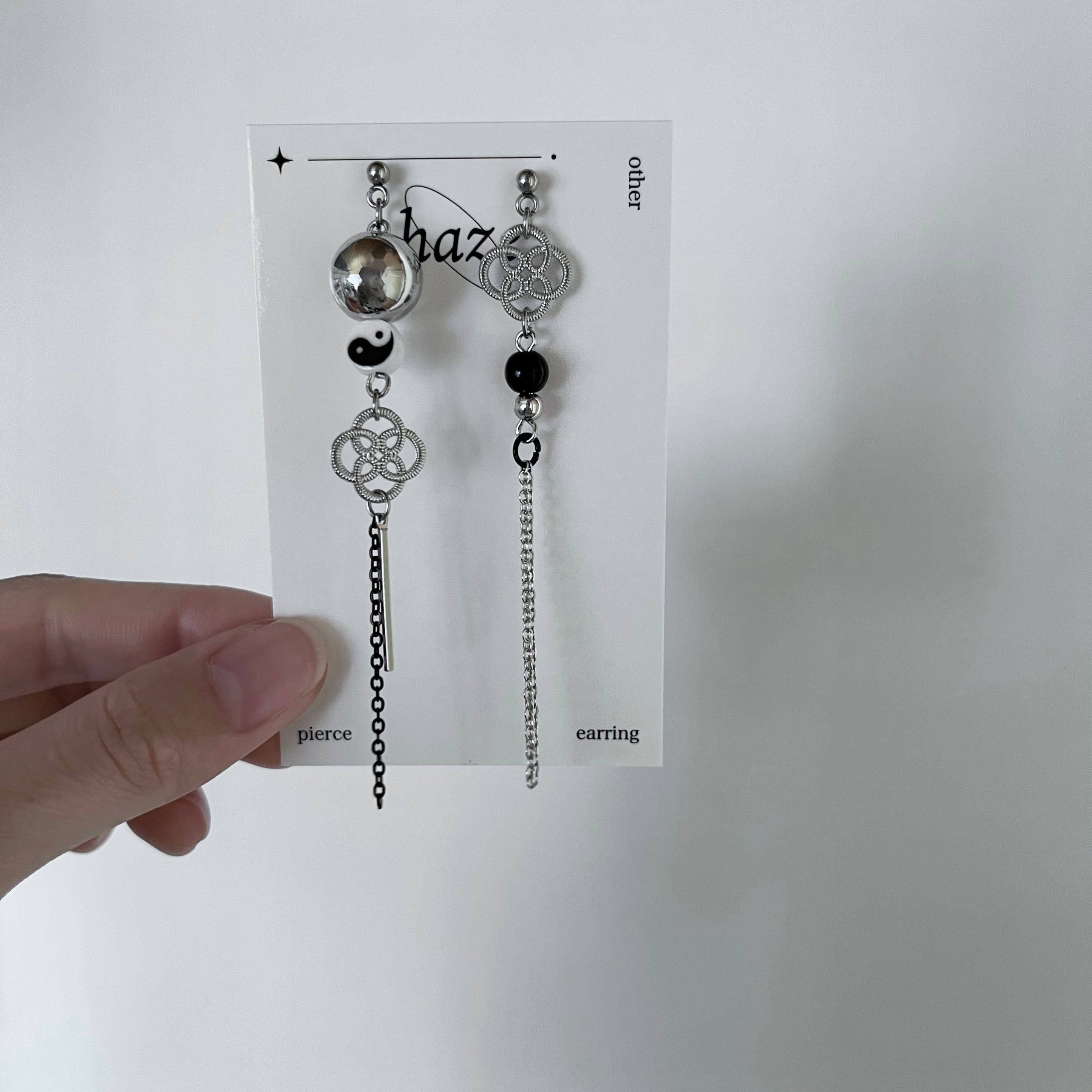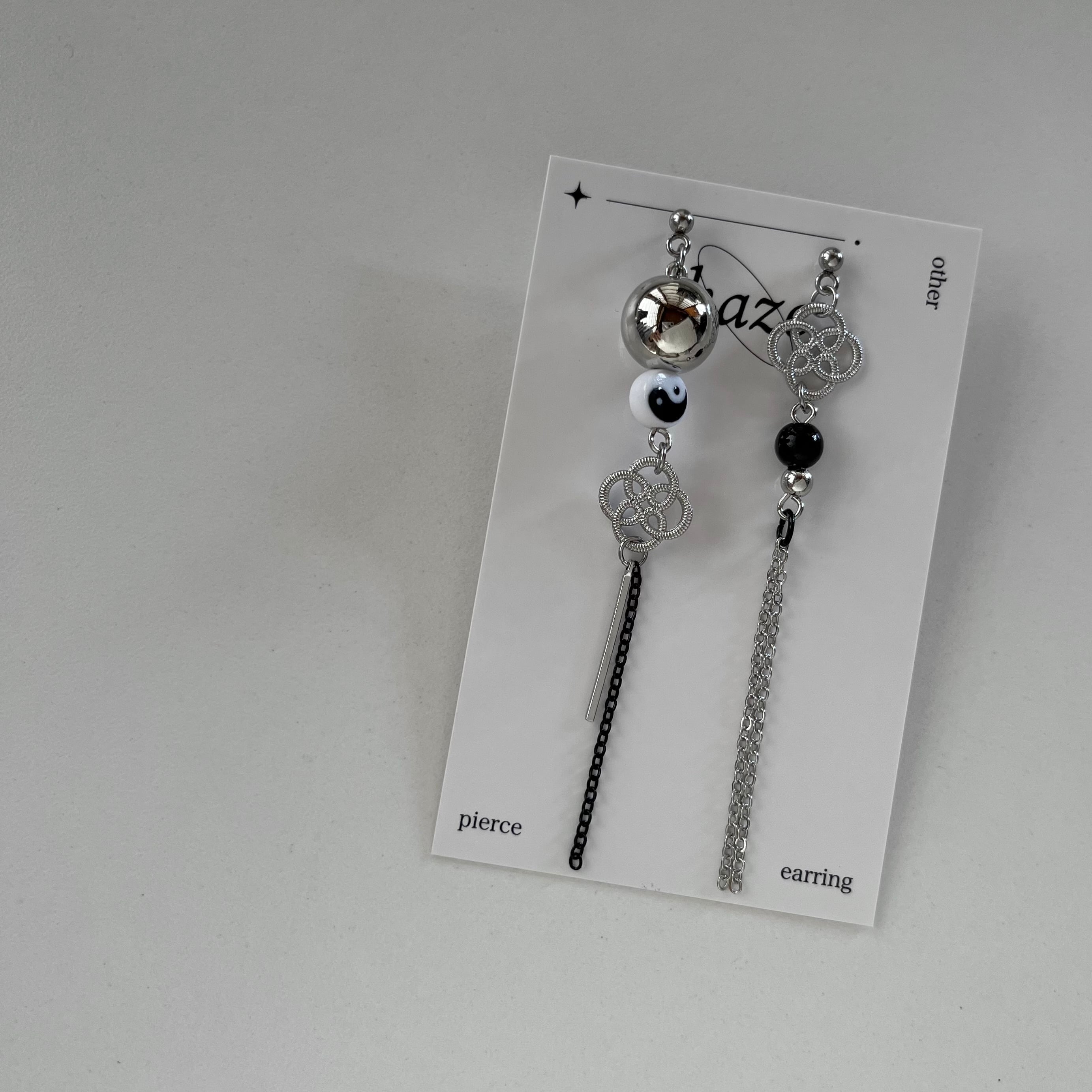 陰陽マークとチェーンのアシメデザインで