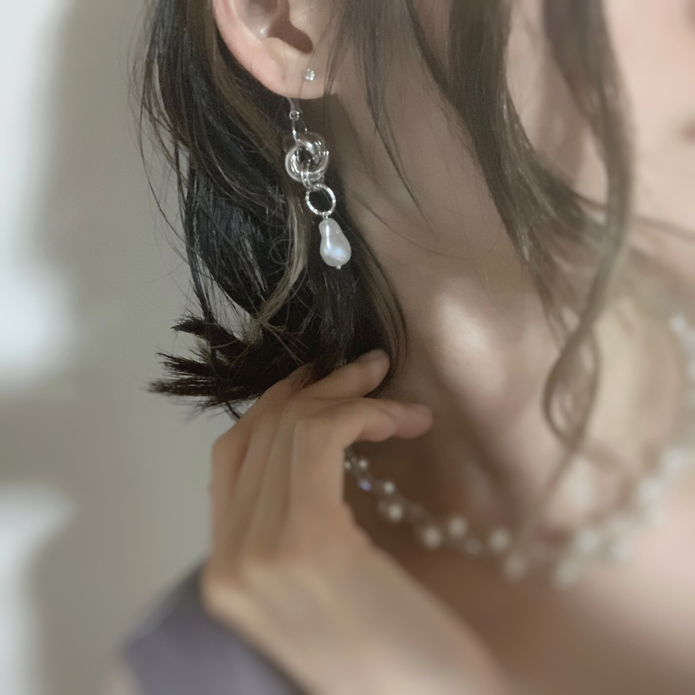White ⚪︎ distorted perl & twist ピアス/イヤリング