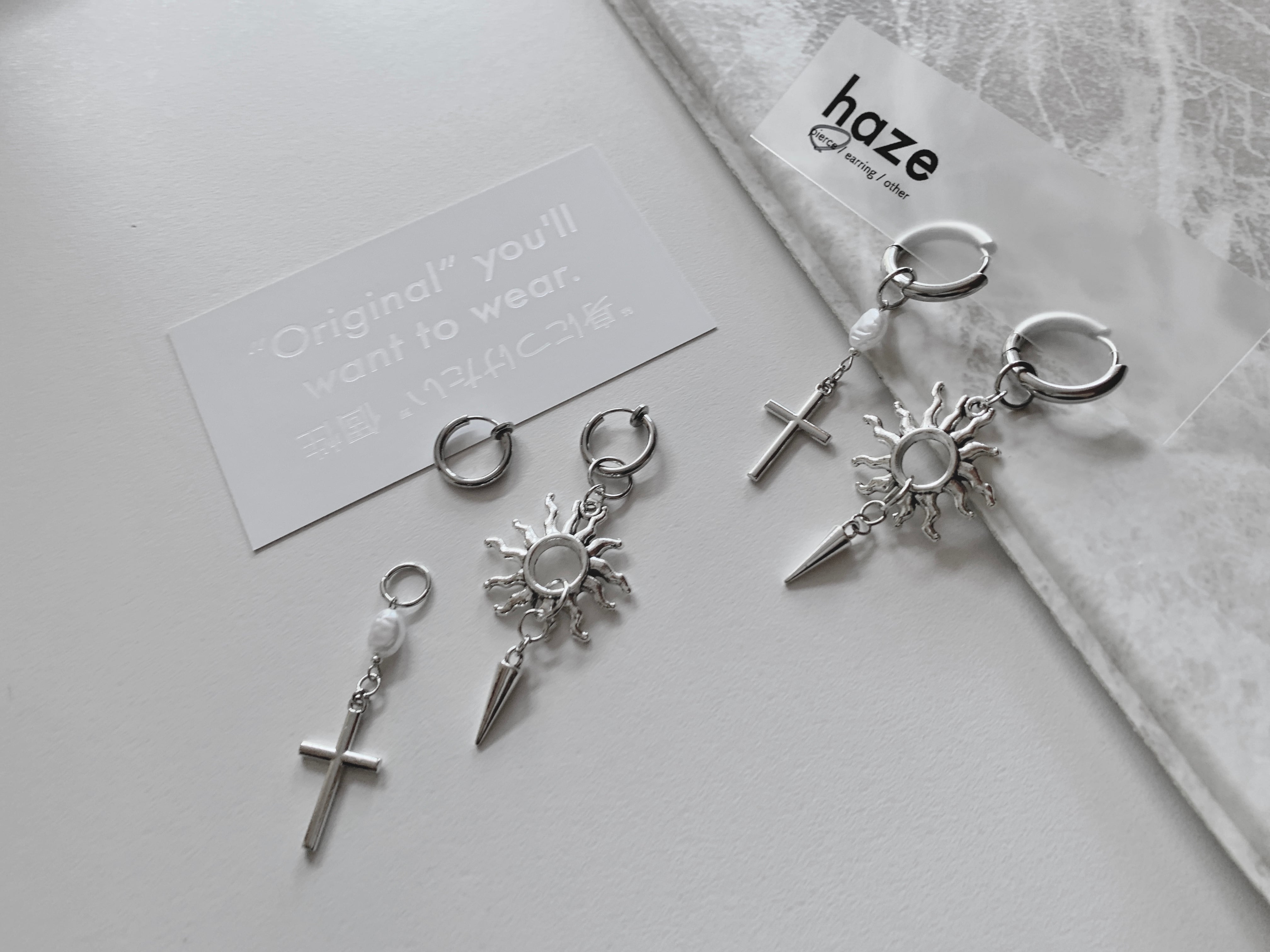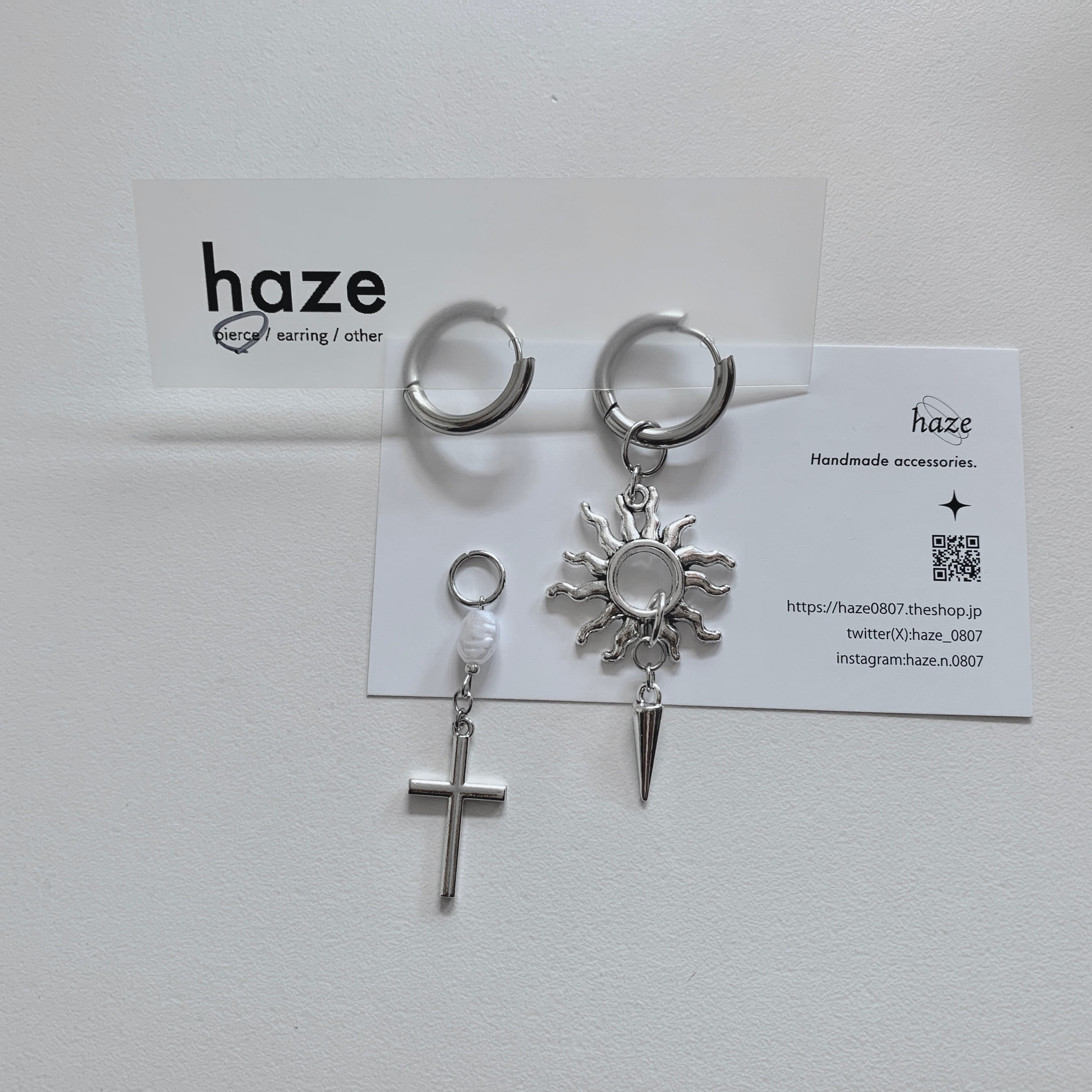 存在感ある太陽モチーフと十字架がポイントのフープピアス/イヤリング。