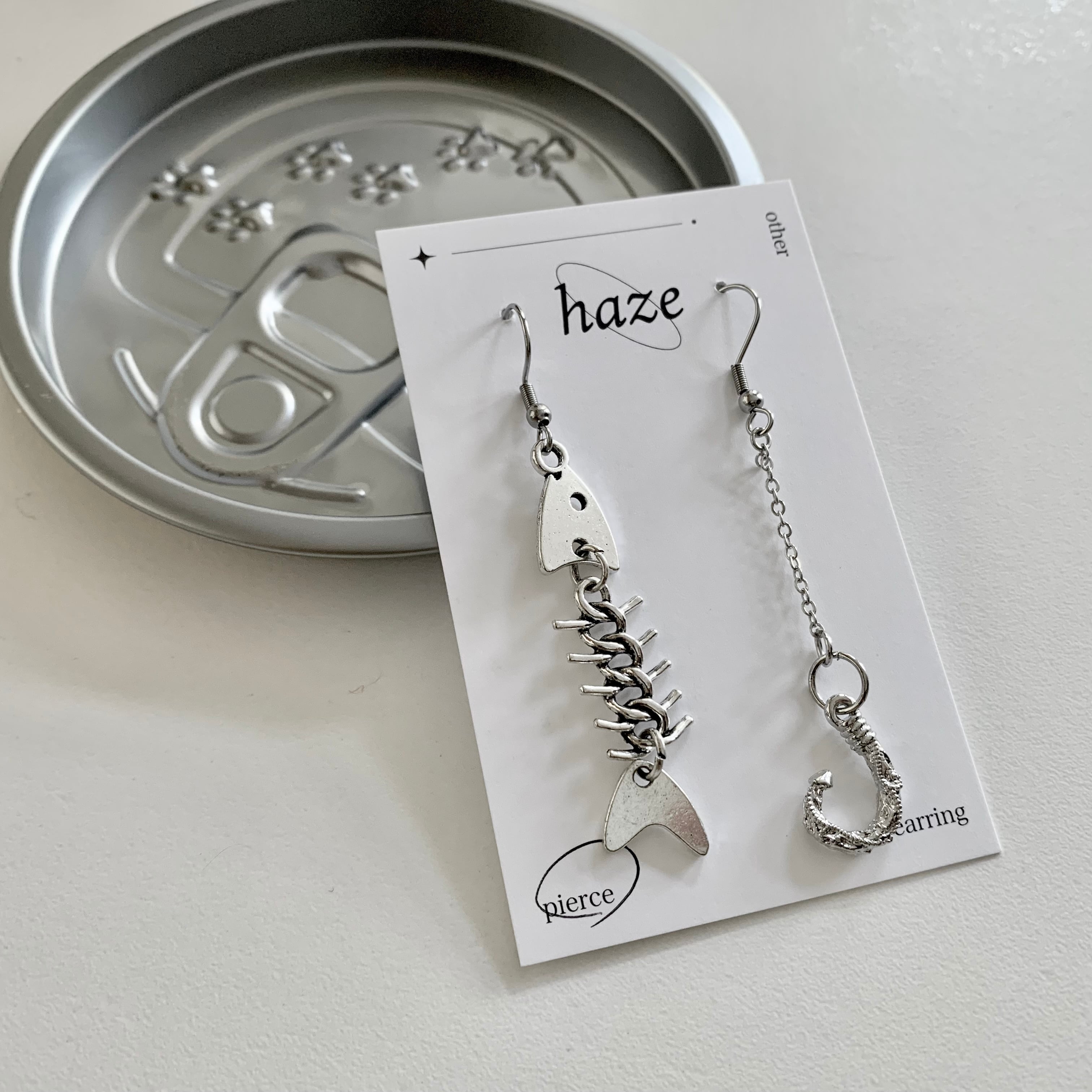アシンメトリーで、片方は釣り針と釣り糸をイメージしたデザイン。