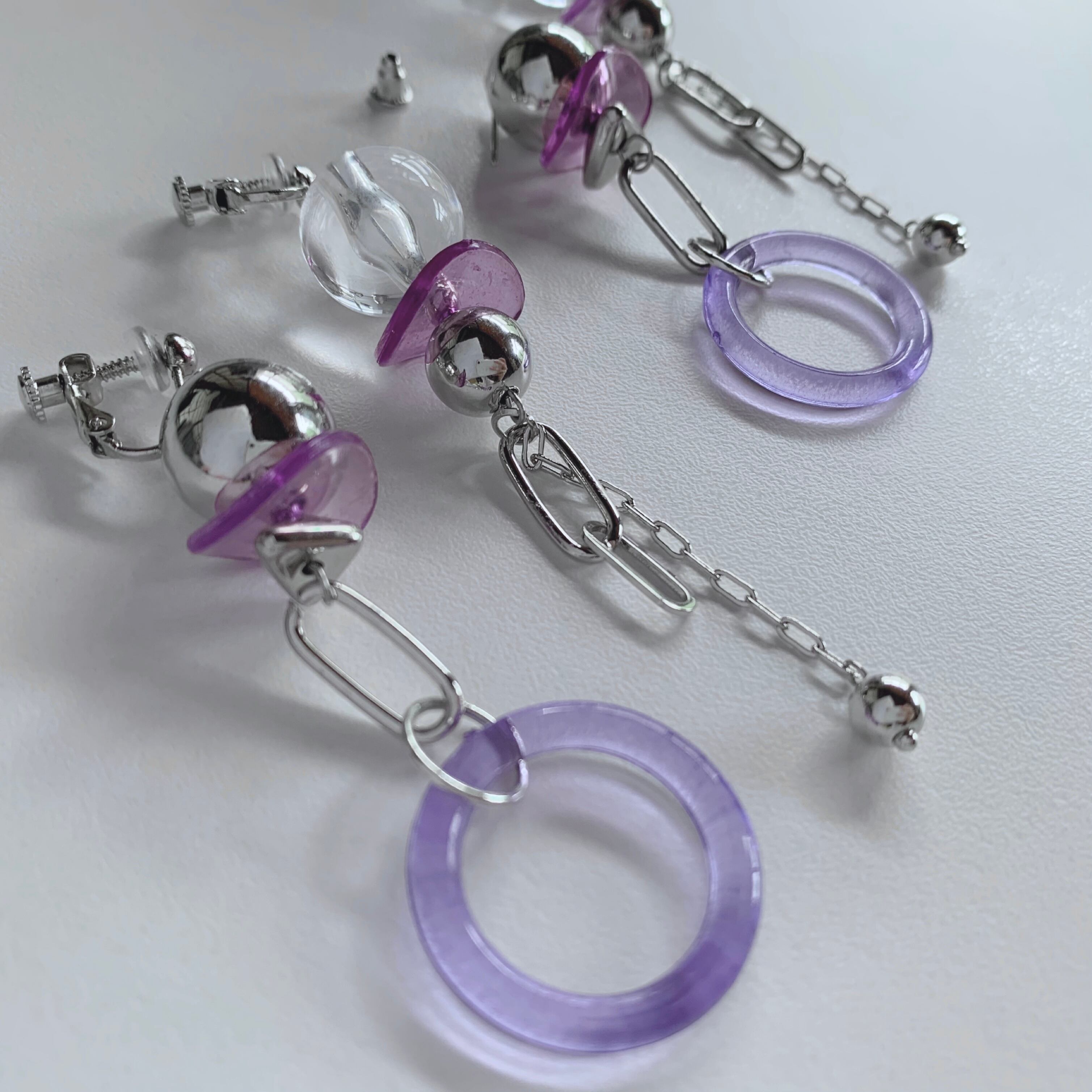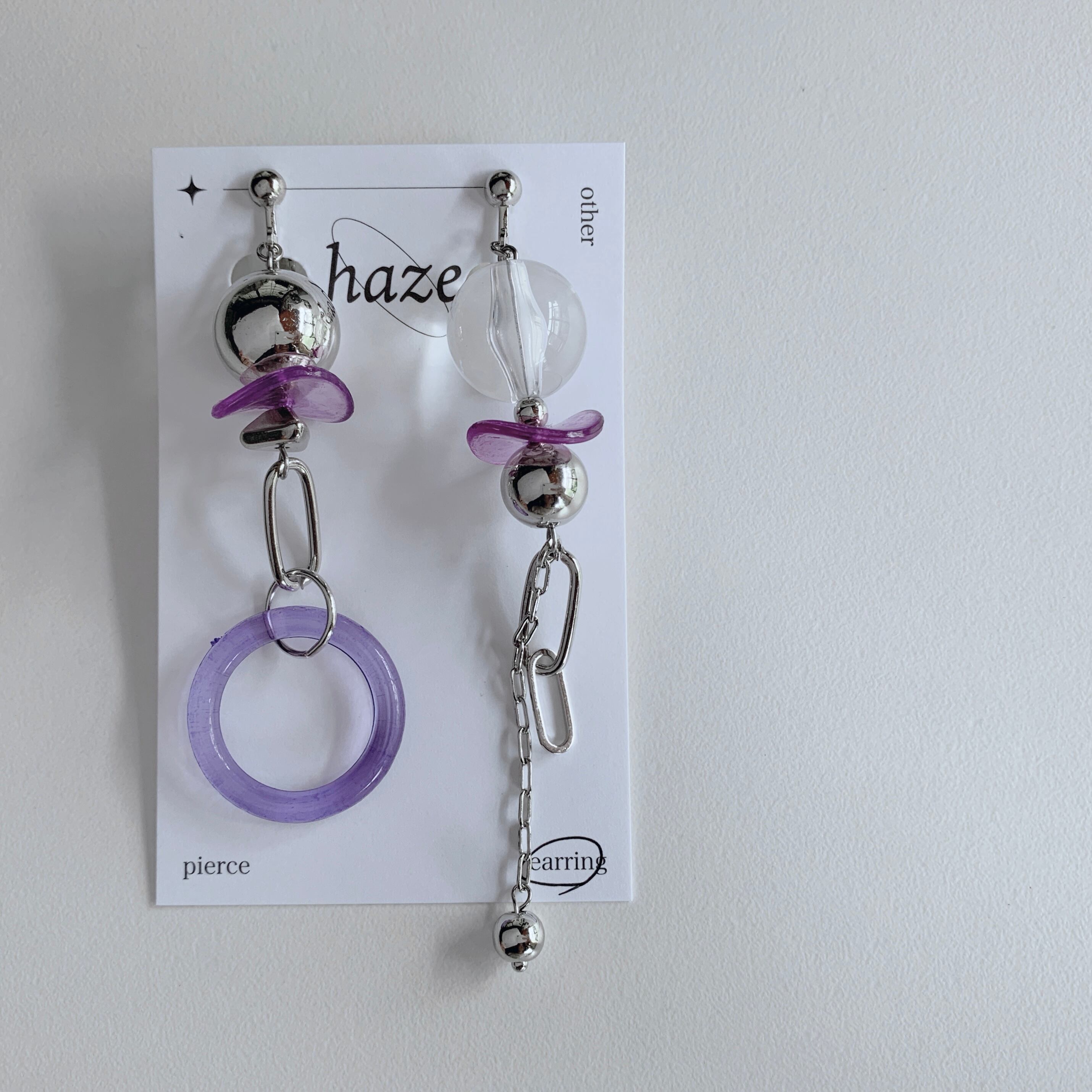 パープル、クリア、シルバーの組み合わせが美しいアシンメトリーデザイン。